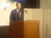最初にゲストスピーカーの伊丹谷五郎様(昭和44年経済卒 社会福祉法人池田さつき会理事長)に「起業から事業拡大まで~老人福祉業界について~」をテーマにご講演頂き、次に東北大震災に伴い宮城県の提携先校が自立する上で必要な支援を行っておられる「Heart on Coin "絆"プロジェクト」から5名の現役生にお越しいただき、活動報告を頂きました。