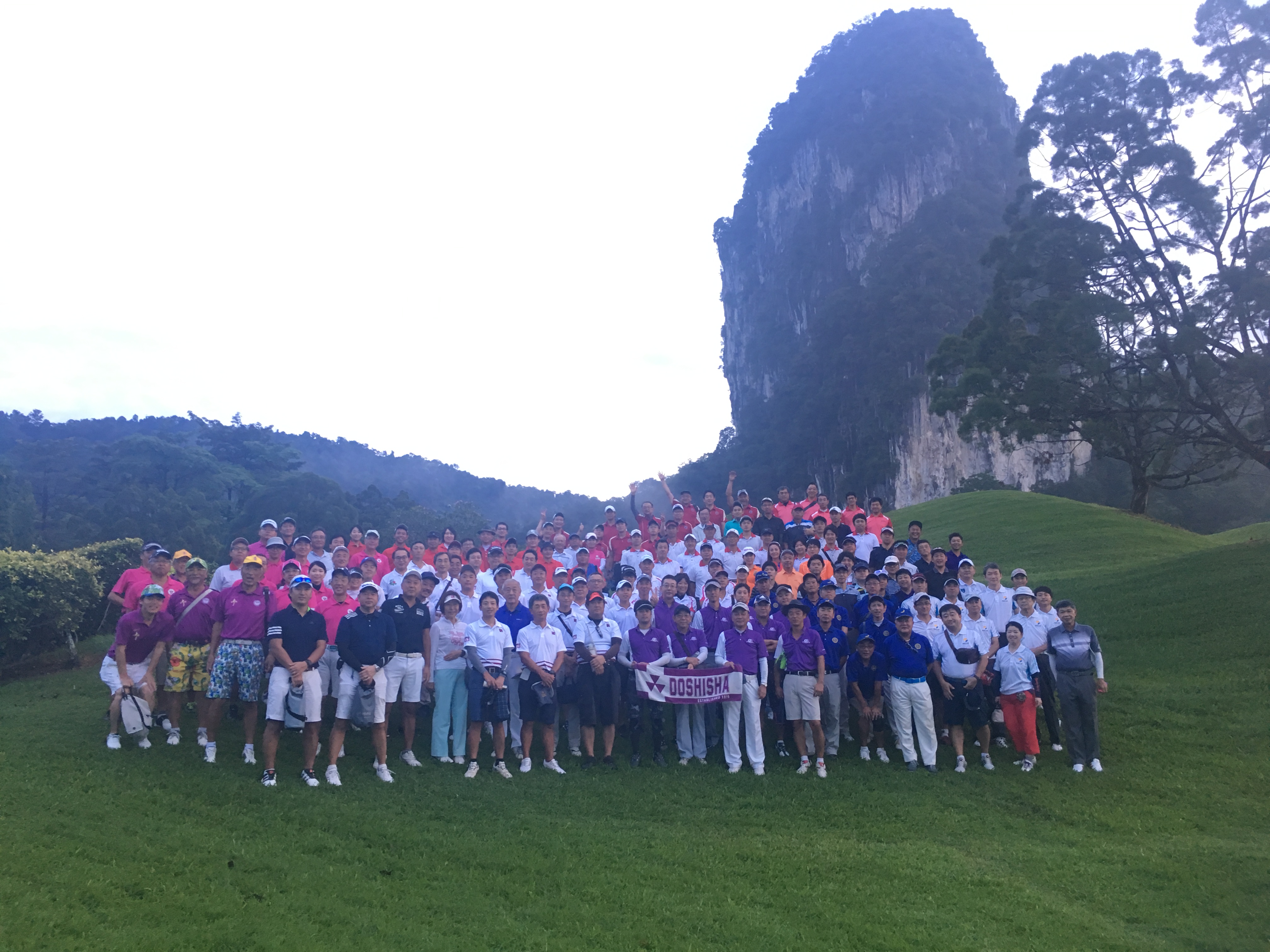 前日に小生がタイピン(車で4時間半)を出て途中イポーで山根さんと合流し夕刻クアラルンプールに到着。夕食でスキー同好会の元木さんと約30年ぶりに偶然の再会後支部長宅に宿泊。支部長からは「明日に備えて余り飲みすぎるな」とのお言葉があったが、終わってみれば支部長宅でも追加焼酎1本が空いてた次第。