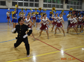 当日は、両校相互の演舞披露にはじまり、「レッツゴーKG」体験会では同校チアとアメフト部の生徒が笑顔で挑戦し、会場は大きな拍手と笑顔に包まれました。