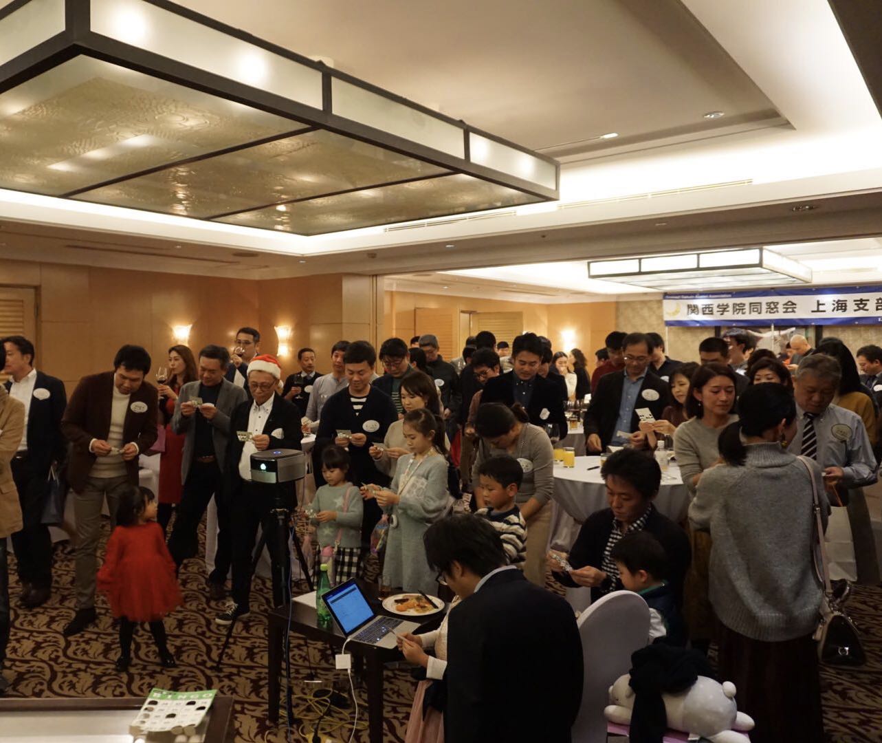 ネット版「北から南から」 更新日:2019年12月24日 上海KG会 2019年度クリスマスパーティ 12月14日(土) 毎年恒例となっているクリスマスパーティを開催しました。 場所は数年ぶりの花園飯店(ホテルオークラ)、参加者はご家族含めて総勢90人を超える人数となりました。 サンタによるお子さんへのプレゼントや上海KG会の2019年重大ニュース、そして沢山の方からご協賛いただいた豪華景品が当たるビンゴ大会と、2時間半大いに盛り上がりました。 既に来年の会場も予約し、今年以上の規模にしようと幹事一同、意気込んでいます。 (1998年 経済学部 洞本 宗和) 前の記事へ 一覧へ戻る 次の記事へ